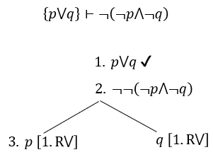 反証図とは上掲図のような枝分かれして行くタイプの図です。この図により、機械的に論理的推論の成否が確認できるようになります。