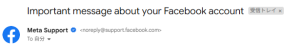 今回のFacebookフィッシングメールの送信元は、上掲画像=下記の通り、まったく本家本元とは区別のつかないものでした。