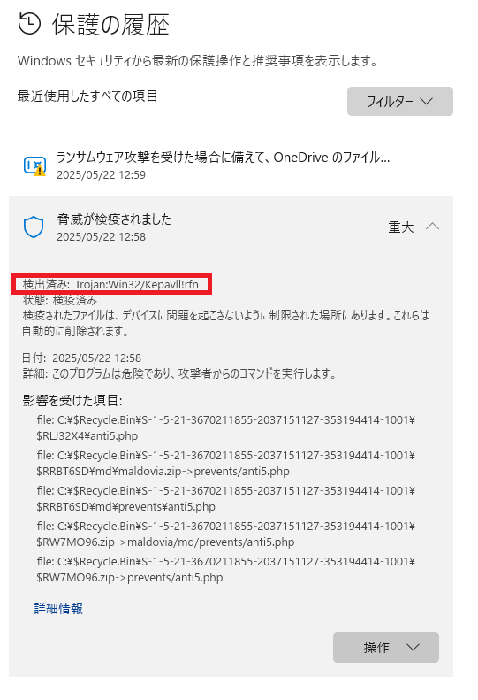 その後、不安になったのでウィルススキャン(フルスキャン)をしたところトロイの木馬が発見された、という次第です。