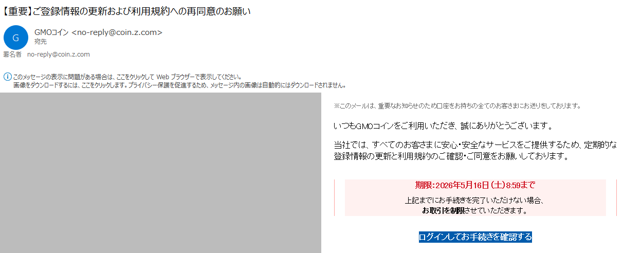 しかし他方で、GMOコイン <no-reply@coin.z.com>というアドレスは、GMOコインが認めている送信先でした。